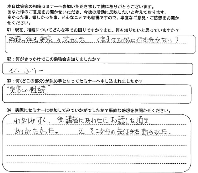 現在、実家の相続についてどんな事で悩んでいますか?また、何を知りたいと思っていますか?